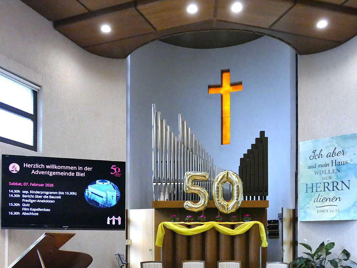 Mit Herzen voller Dankbarkeit und Zuversicht schaut die Adventgemeinde Biel in die Zukunft. Getragen vom Versprechen aus Josua 24,15 bleibt ihr Motto auch nach 50 Jahren bestehen: