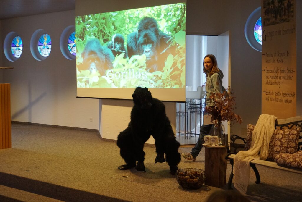 …hiess es wieder am Zeigetag der adventistischen Heimschulkinder in Aarau. Da steht, plötzlich ein Gorilla im Raum – man erfährt, dass das gefährlichste Tier der Welt erstaunlich klein ist, wie komplex unser Auge aufgebaut ist und welche Theorien es zu Fossilien gibt. Es wurde Englisch und Französisch gesprochen und auch die Sprache der Musik kam nicht zu kurz. Das ist gelebte Allgemeinbildung, wenn man die vielen abwechslungsreichen Vorträge hört, die mit grosser Begeisterung vorbereitet und vorgetragen wurden. Bis zum nächsten Mal!